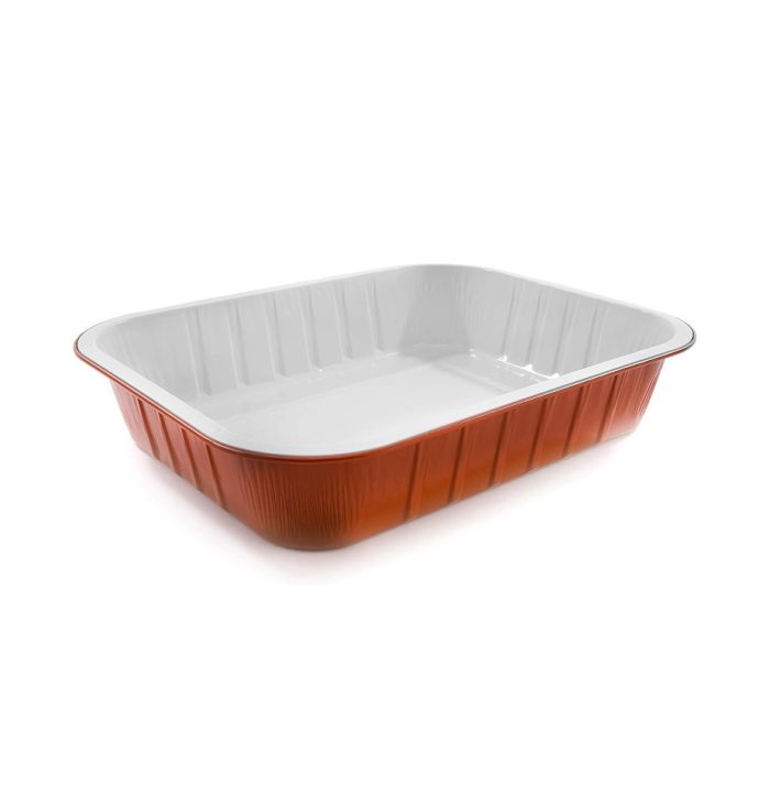 Elegante vaschetta smoothwall da 3600ml, con interno bianco e esterno rame. Idonea a forno, microonde, frigo...